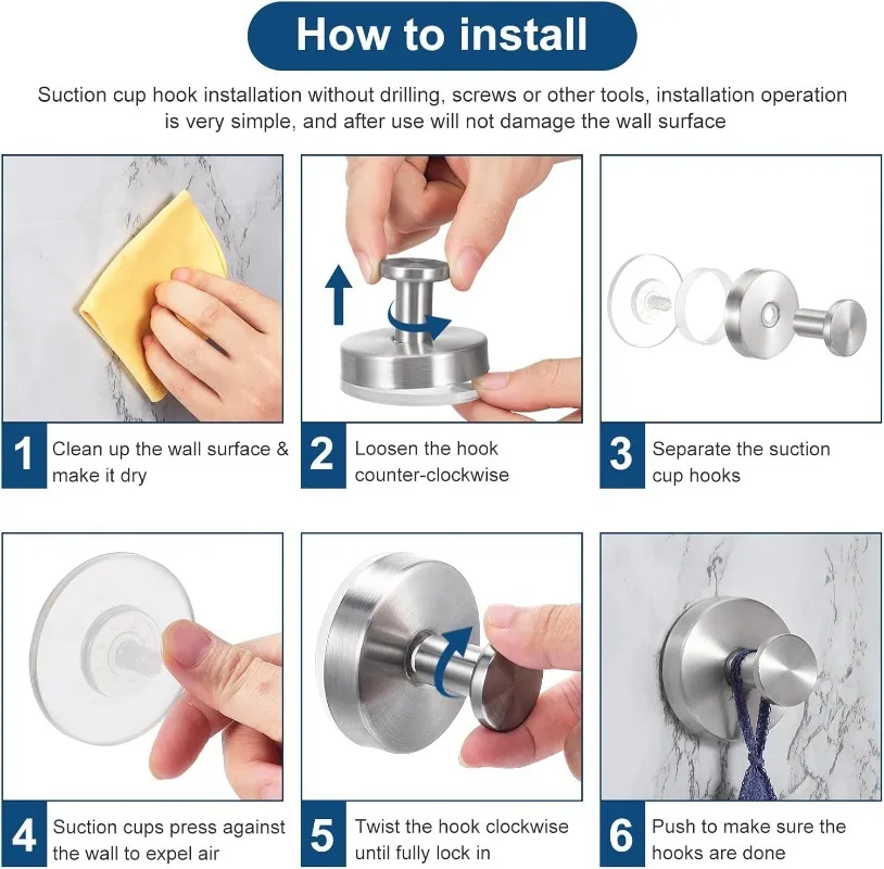 8/1PCS Stainless Steel Suction Cup Hooks Punch-Free Wall Mounted Hook Hanging Towel Holder Kitchen Bathroom Vacuum Suction Cups